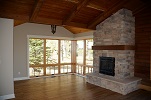 fireplace, chimney, and new entry porch design provided a rustic cozy